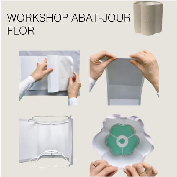In this hands-on workshop, you will learn to create a 20 cm diameter flower-shaped lampshade, exploring step by step how to cut, glue, and assemble the fabric to create a unique and elegant piece.